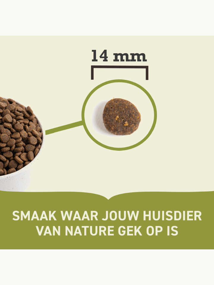 Analytische bestanddelen: Ruw eiwit 35 %, vetgehalte 17 %, ruwe as 8,5 %, ruwe vezel 6 %, vocht 12 %, calcium 1,8 %, fosfor 1,3 %, omega-6 2 %, omega-3 1 %, DHA/EPA 0,2 % / 0,2 %.