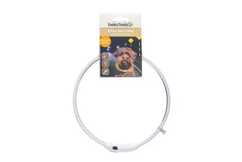 Met deze Beeztees Safety Gear Dogini lichtgevende hondenhalsband zorg je ervoor dat jouw hond goed zichtbaar is tijdens wandelingen in het donker. Deze waterafstotende LED halsband is USB-C oplaadbaar en gemaakt van stevig TPU. Wat deze lichtgevende halsband voor de hond uniek maakt, is dat je deze op maat kan knippen. Zo kan je zelf de ideale pasvorm voor jouw hond aanmeten. De halsband kan licht geven op 4 verschillende standen, namelijk continu blauw, rood of groen licht en een knipper stand met deze 3 kleuren. Wanneer je de band op knipperstand laat staan, zal deze tot 5 uur lang mee gaan. Met continu licht zal de halsband tot 3 uur meegaan. Jouw hond zal tot 300 meter zichtbaar zijn met deze halsband. Let op dat er geen hondenriem aan deze halsband bevestigd kan worden.