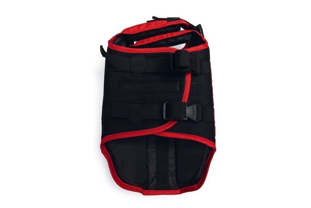 Jouw hond veilig meenemen in of op het water doe je met dit Beeztees Zwemvest Hond. Dit hondenzwemvest heeft een uitstekend drijfvermogen. Het zwemvest zorgt ervoor dat jouw hond veilig blijft in onverwachte situaties, bijvoorbeeld stromingen of hoge golven. Door de rode kleur is jouw hond ook goed zichtbaar. Wanneer je jouw hond wil leren zwemmen, kan dit vest helpen om jouw hond zekerheid te geven in het water. Om de perfecte pasvorm te bereiken, is het vest zowel op de borst als op de buik te vertellen met klittenband en een kliksluiting. Deze dubbele sluiting zorgt er bovendien voor dat jouw hond niet zomaar uit het vest kan ontsnappen. Op de rug vind je een handig handvat en een stevige D- ring. Spoel het zwemvest na gebruik altijd af met koud water.