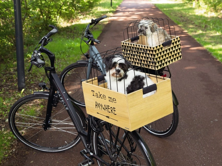 Op zoek naar een hippe fietsmand voor je hond voor achterop de fiets? Dan heb jij deze gevonden! Deze toffe houten krat, met leuke quote of grafische print, is voorzien van een lekker zacht kussentje voor extra comfort. Heb je een beweeglijk hondje, dan is een mand achterop vaak fijner dan voorop, omdat er dan niet aan het stuur wordt getrokken. De kap zorgt ervoor dat jouw hond niet uit het mandje kan springen. De Beeztees fietsmanden worden geleverd met een uniek kliksysteem. Dit kliksysteem is geschikt voor elke (elektrische) fiets met een bagagedrager met een breedte van 9-16 cm en spijlen met een diameter van 8-16 mm (ook geschikt voor V-shape bagagedragers). Inclusief anti- diefstal vergrendeling. Zo gaan jullie een veilige en stijlvolle tocht tegemoet.