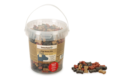 De Beeztees Mini Bones zijn heerlijke kleine hondensnacks. Deze snacks van granen bevatten de smaken kip, pens en zalm. De naam zegt het al, maar de snacks hebben de vorm van een botje. Vanwege het kleine formaat zijn deze Mini Bones een ideale snack om jouw hond mee te trainen. De Beeztees Mini Bones hebben geen toegevoegde suikers.