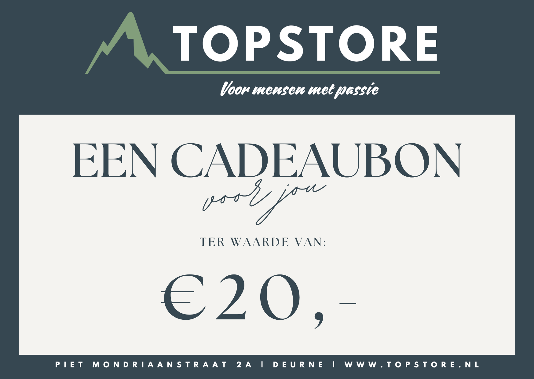 Verras iemand met een cadeaubon van TOPSTORE! Je kunt hem natuurlijk ook voor jezelf bestellen. De cadeaubon is te besteden in onze winkel in Deurne en geldig op het hele assortiment van koi en vijver, hengelsport en huisdier. Je kunt de bon ook online verzilveren door middel van een kortingscode (dit dan graag even bij de opmerkingen vermelden).