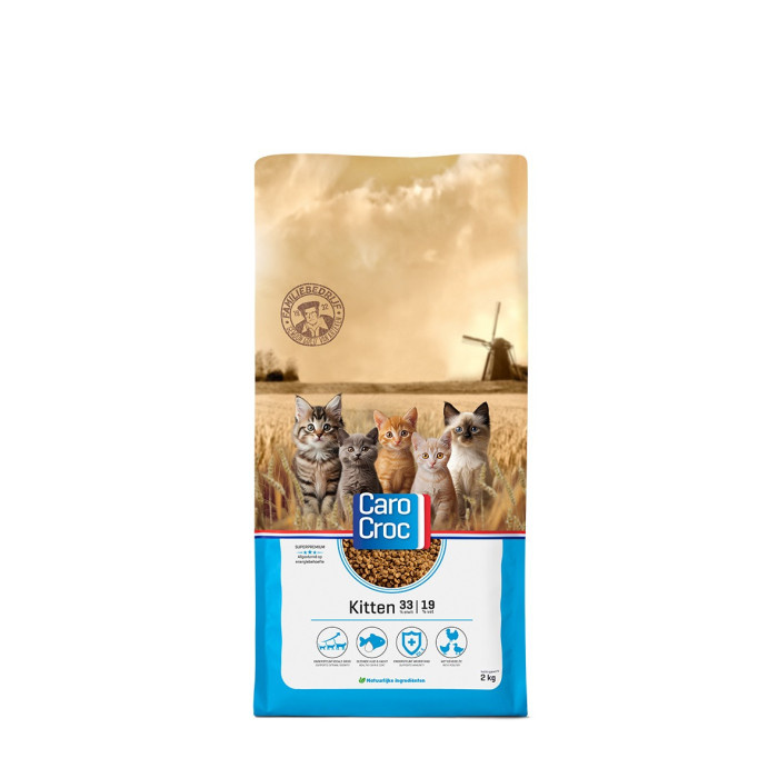 Wanneer je kiest voor de CaroCroc Kitten dan weet je zeker dat het gewoon goed zit. Door de uitgebalanceerde samenstelling van het kitten voer kan je kitten zich optimaal ontwikkelen en legt hierdoor een stevige basis voor een gezond en vitaal kattenleven. De CaroCroc-filosofie is ook wel het voeren naar energiebehoefte. En door het unieke eiwit-vetgehalte in deze voeding krijgt jouw kitten de juiste hoeveelheid energie binnen. De brokken bevatten 33% eiwit en 19% vet, dit percentage ligt hoger dan bij een gemiddelde volwassen kattenvoeding. Hierdoor krijgt jouw kitten precies genoeg energie om zich volop te kunnen ontwikkelen! Deze voeding is geschikt voor kittens van alle rassen en kan gevoerd worden tot een leeftijd van 1 jaar. Het brokje heeft een diameter van 7mm.