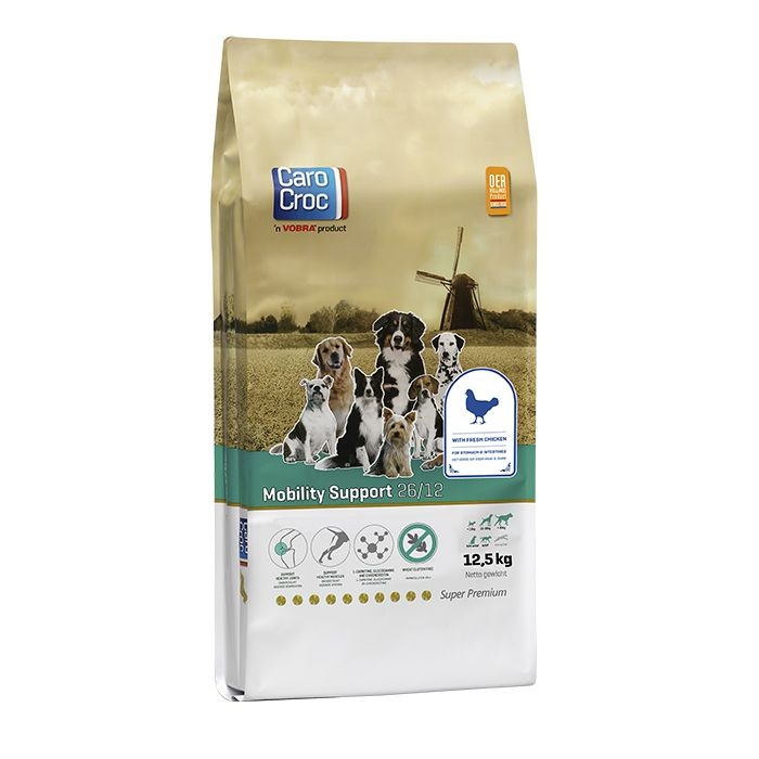 Sommige honden zijn extra gevoelig voor gewrichtsslijtage, zoals grote honden, breedgebouwde honden of honden met een lange of lage rug. Daarom is het belangrijk om hun gewrichten extra ondersteuning te bieden. CaroCroc Mobility Support ondersteunt deze honden bij het behoud van een goede lichaamsconditie.