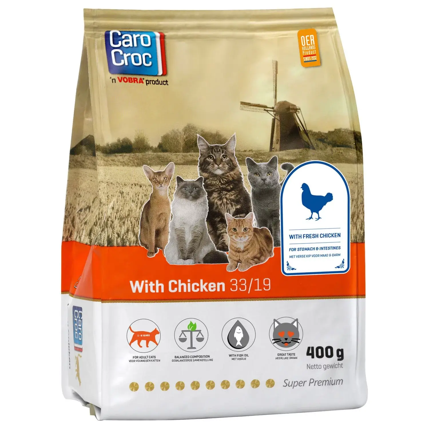 De CaroCroc With Chicken is een volledige voeding voor de volwassen kat. Zoals de naam het eigenlijk al zegt is deze voeding op basis van verse kip. De 'With Chicken' staat voor het hoge aandeel gevogelte in deze voeding en is zeer smakelijk en licht verteerbaar. De brokken bevatten prebiotica wat bijdraagt ter ondersteuning van gezonde darmen van jouw huistijger. Deze voeding bevat alle voedingsstoffen die jouw volwassen kat nodig heeft.