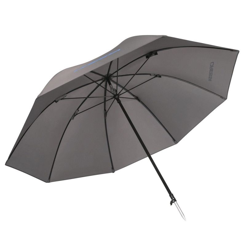 De Cresta Climate Shield Allround Brolly is universeel inzetbaar om elke sessie aan de waterkant comfortabel te maken. Het ronde,bolvormige model “omringd” de visser en zorgt voor bescherming tegen zon, wind en regen. De naden van het 300D doek zijn volledig geseald. Het robuuste angletiltsystem met vertanding biedt de mogelijkheid de 8 baleinen te kantelen om zo de optimale hoek te bereiken. Met behulp van de twee D-ringen en Ground Pegs kan het doek in geknikte positie tegen de grond worden vastgezet. De uitschuifbare pin kan zowel in de grond als in een steun geplaatst worden. Dankzij het vernuftige Non Mark Height Adjustment Block kan de paraplu op de gewenste hoogte worden gefixeerd. Voor optimaal transportgemak wordt De Climate Shield Allround Brolly geleverd in een opbergsleeve.