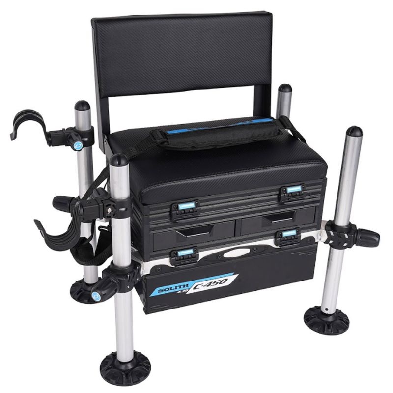 De Solith 4x36 zitmand is uitgerust met een lichtgewicht aluminium frame en vier verstelbare 36 mm poten met kantelbare moddervoeten. Deze compacte zitmand biedt veelzijdige opbergmogelijkheden voor zowel de vaste hengel- als feedervisser. Elke uitvoering beschikt over een ruim basiscompartiment onder het frame, en varieert in lade-indeling afhankelijk van het model. De gewatteerde zitting zorgt voor uitstekend zitcomfort, terwijl de afneembare, gevoerde schouderband het transport vereenvoudigt. Bovendien worden er standaard twee gratis hengelsteunen meegeleverd. De Solith 4x36 is beschikbaar in twee modellen.