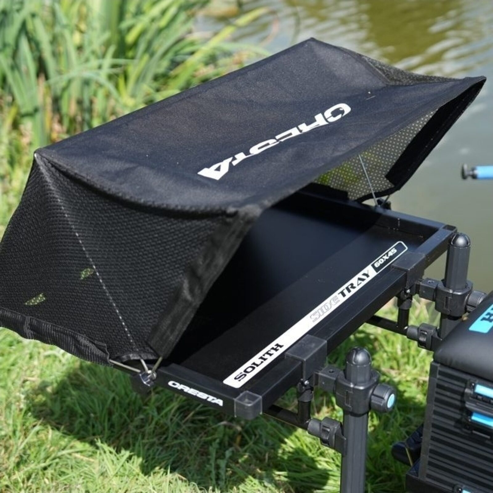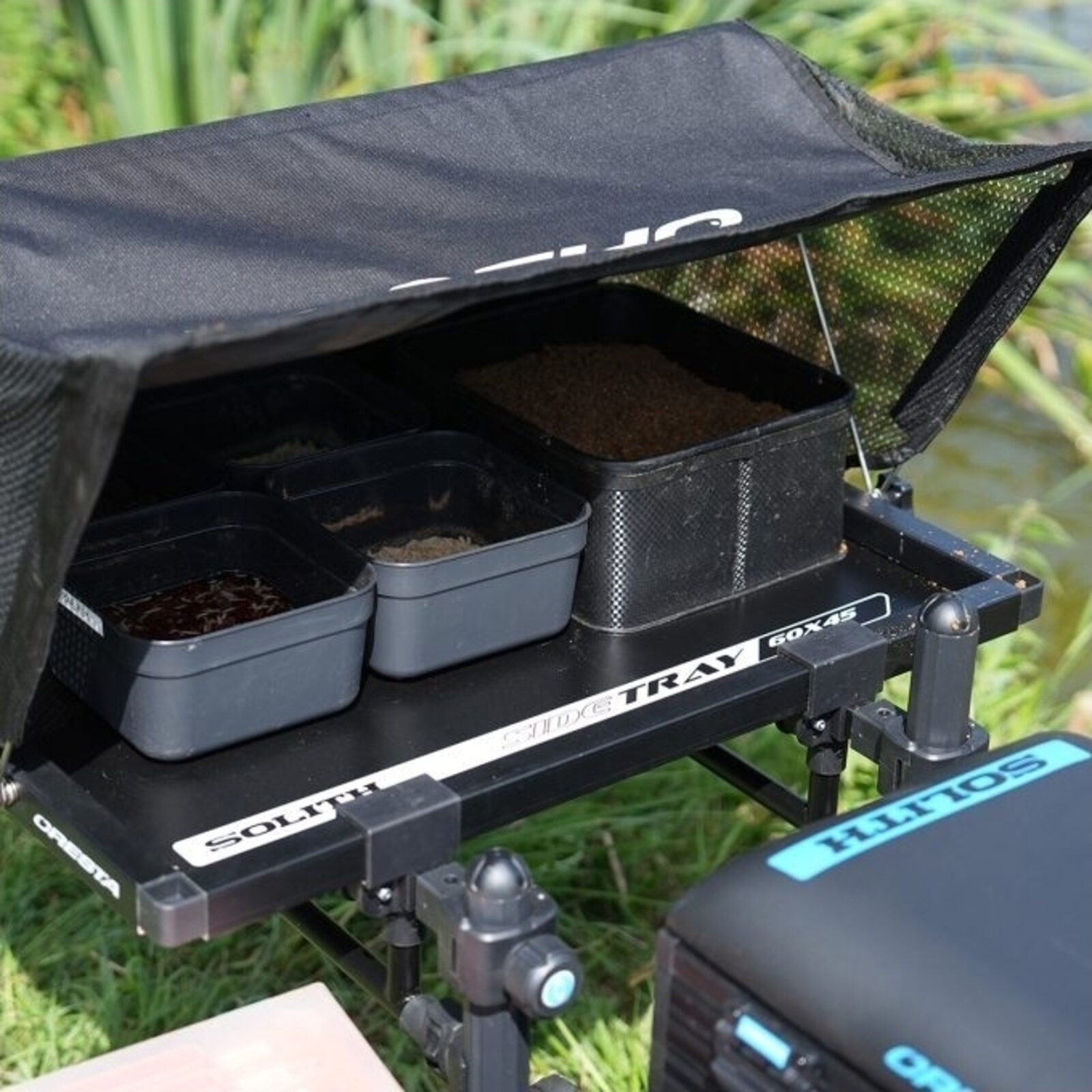 De Cresta Solith Hooded Side Tray is een veelzijdige aastafel die je aas beschermt tegen zowel zon als regen. Of je nu aan de waterkant zit of op een boot, deze tray biedt een praktische oplossing voor het organiseren van je aas. Met een royale binnenmaat van 60x45 cm heb je genoeg ruimte voor minstens zes grote tubes en meer. De verstelbare kap zorgt er voor dat je aas altijd goed beschermd is, ongeacht de weersomstandigheden.