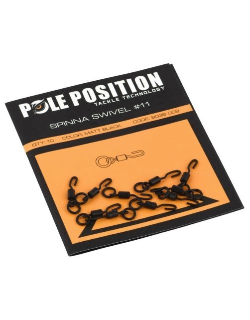 De pole position spinna swivel is speciaal ontwikkeld voor het maken van de populaire ronnie rig. Deze swivel is voorzien van een ruimere opening zodat je de haak gemakkelijk kan bevestigen. Nu hoef je de swivel namelijk niet meer open te buigen. Voorzien van een ring om de draaiing bij het inhaken te bevorderen.