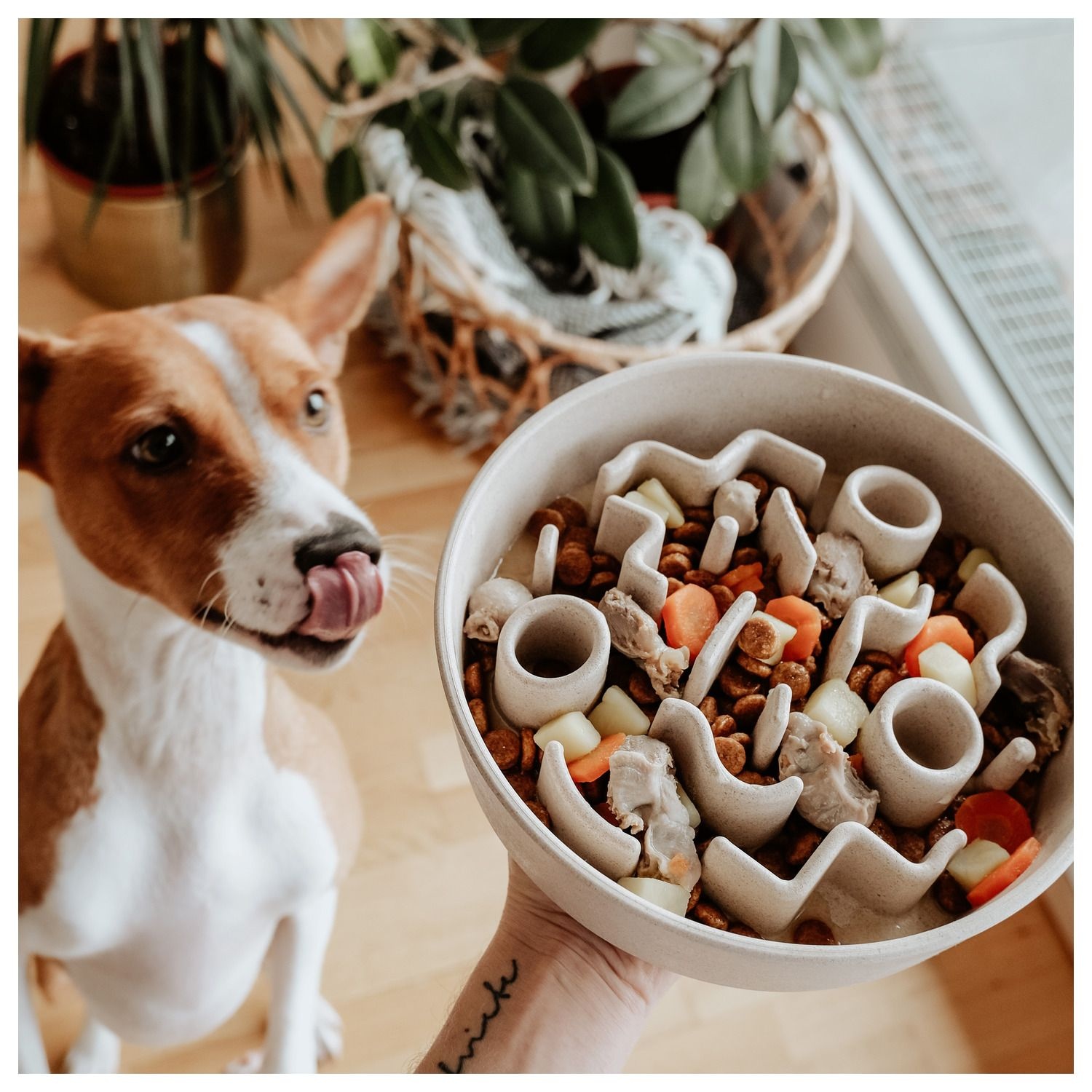 Designed by Lotte Anti Schrokbak Pom Beige - Hond (17cm)