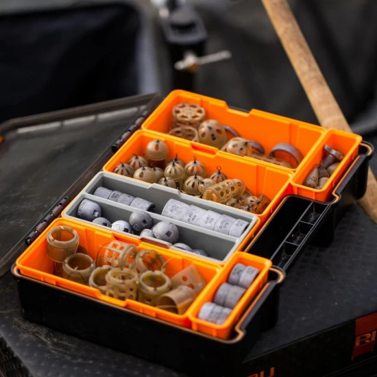 In de opbergdoos zijn extra inzetstukken verkrijgbaar (apart verkrijgbaar) waarmee vissers EVA-haaklengtespoelen en kortere method-haaklengtes kunnen opbergen op een speciaal ontworpen haakbakje. Je kunt ook elastische en niet-elastische X-Safe-stelen, reserve X-Change feedergewichten, Feeder Links, plus alle terminalbits zoals Swivels, Speed Beads, Lead Clips en nog veel meer terminal-tackle-items opslaan in dit robuuste, compacte systeem .