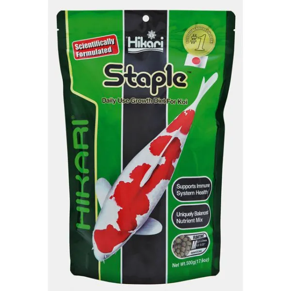 Hikari Staple is een dagelijks basisvoer voor Koi en andere vijvervissen. De unieke balans van de ingrediënten zorgt voor een uitstekende groei en ondersteuning van het immuunsysteem. Hikari Staple is al jarenlang een bewezen kwaliteit. - Premium ingrediënten voor een gezonde groei. - Zorgt voor een uitstekende conditie en gezondheid. - Geschikt voor Koi en vijvervissen in alle formaten. - Drijvende korrels in Small, Medium en Large.