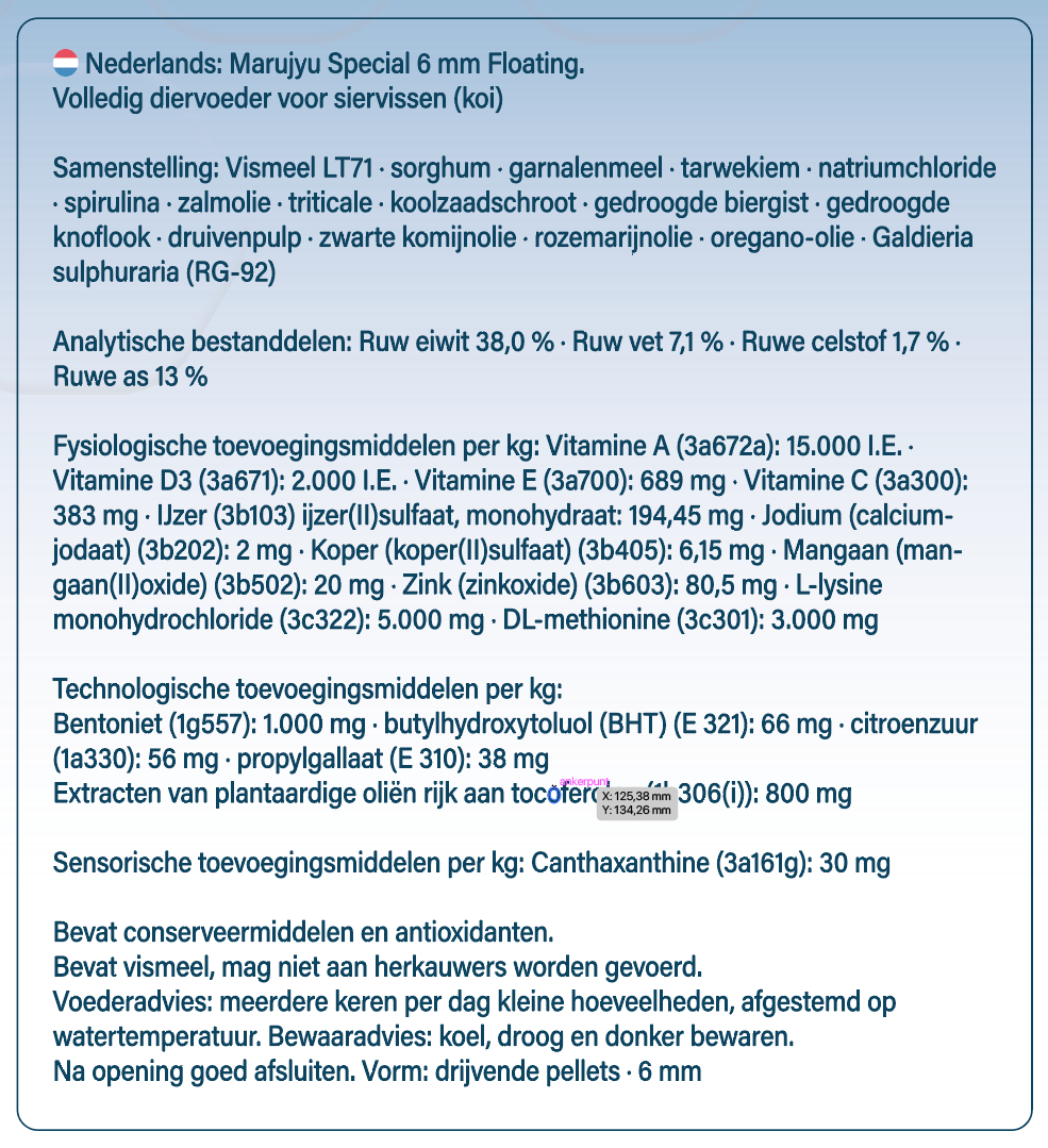 Onze conclusie: RG-92 kan daadwerkelijk een duidelijke meerwaarde betekenen ten opzichte van ons bestaande Kinsai-voer. Omdat RG-92 een merkbare invloed heeft op de kostprijs, hebben we bewust gekozen voor transparantie. Daarom introduceren we naast Kinsai, het Marujyu Special voer: