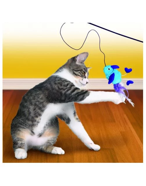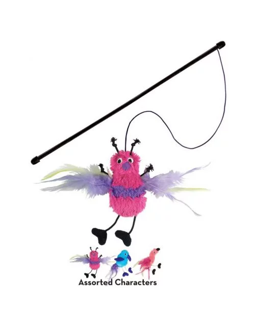 en speelhengel is altijd een geschikt speeltje voor je kat. Deze heeft iets extra leuks! De Teaser Feather Assorted van KONG heeft niet alleen veertjes maar een heel beestje aan de hengel hangen! Het vrolijk gekleurde beestje heeft felgekleurde veertjes die alle kanten op wapperen zodra jij met de hengel gaat rond zwieren. Deze leuke beestjes zijn gevuld met premium Noord-Amerikaans kattenkruid voor extra stimulatie. Daarnaast maken de beestjes een vrolijk kreukelend geluid wanneer je kat hem te pakken heeft. Een leuke kattenhengel om met je kat samen te spelen!