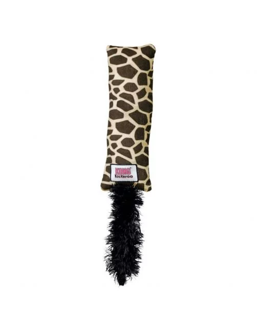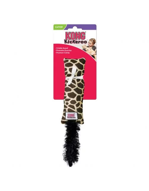 De Kickeroo Pattern van KONG heeft een speciaal ontworpen lengte die geschikt is voor katten zodat ze gemakkelijk met hun achterpoten tegen het speeltje aan kunnen trappen. Dit bevordert de gezonde lichaamsbeweging voor iedere kat. De pluizige staart van de Kickeroo wakkert het jachtinstinct van je kitten aan. Het kreukelgeluid in het kussentje in combinatie met het onweerstaanbare premium Noord-Amerikaanse kattenkruid maken het speelplezier af. De Kickeroo Pattern heeft een giraf printje.