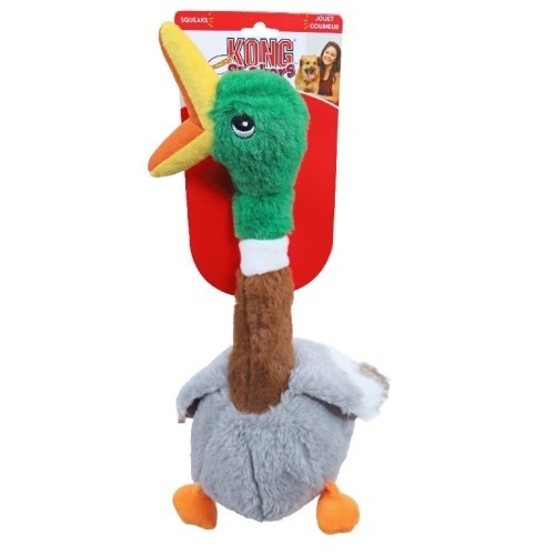 Kong eend: De textuur van de interne nek bevredigt de natuurlijke kauwinstincten van je hond. Terwijl de lange, slappe poten speelgedrag activeren.