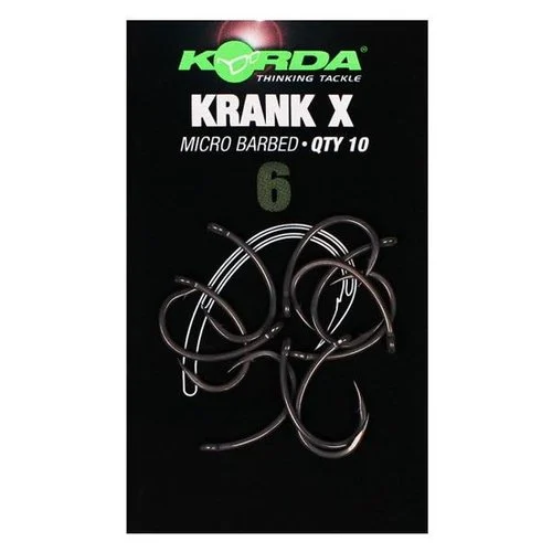 Het opvallende Krank haakmodel is een ongelooflijk succes en vele vissers maken inmiddels gebruik van het aparte design. Het model is ontwikkeld door product ontwikkelaar Tom Dove. Hij wilde een haak hebben met een ruime haakbocht, gekromde steel en klauwpunt die perfect te gebruiken is met bijvoorbeeld de populaire KD presentatie of een eenvoudige knotless knot onderlijn. De Krank haken worden speciaal voor Korda door de beste haakfabrikanten van Japan geproduceerd. Nieuw voor het voorjaar van 2016 zal een extra stevige X uitvoering van de haak zijn. De Krank X maakt het daarmee mogelijk om dit model haak ook onder veeleisende, zware omstandigheden in te zetten. Net zoals de standaard uitvoering van de Krank is de haak voorzien van een vlijmscherpe punt die offset van de haaksteel is geplaatst. Hierdoor wordt tijdens de dril de druk over een groter oppervlakte verspreid.