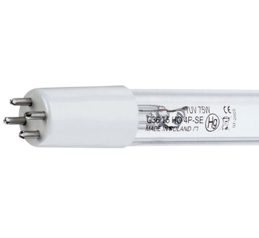 LightTech UV losse lamp T5 40 watt. Lengte van de lamp incl. pin bedraagt 84,8 cm. Kleur van het voetje is wit.