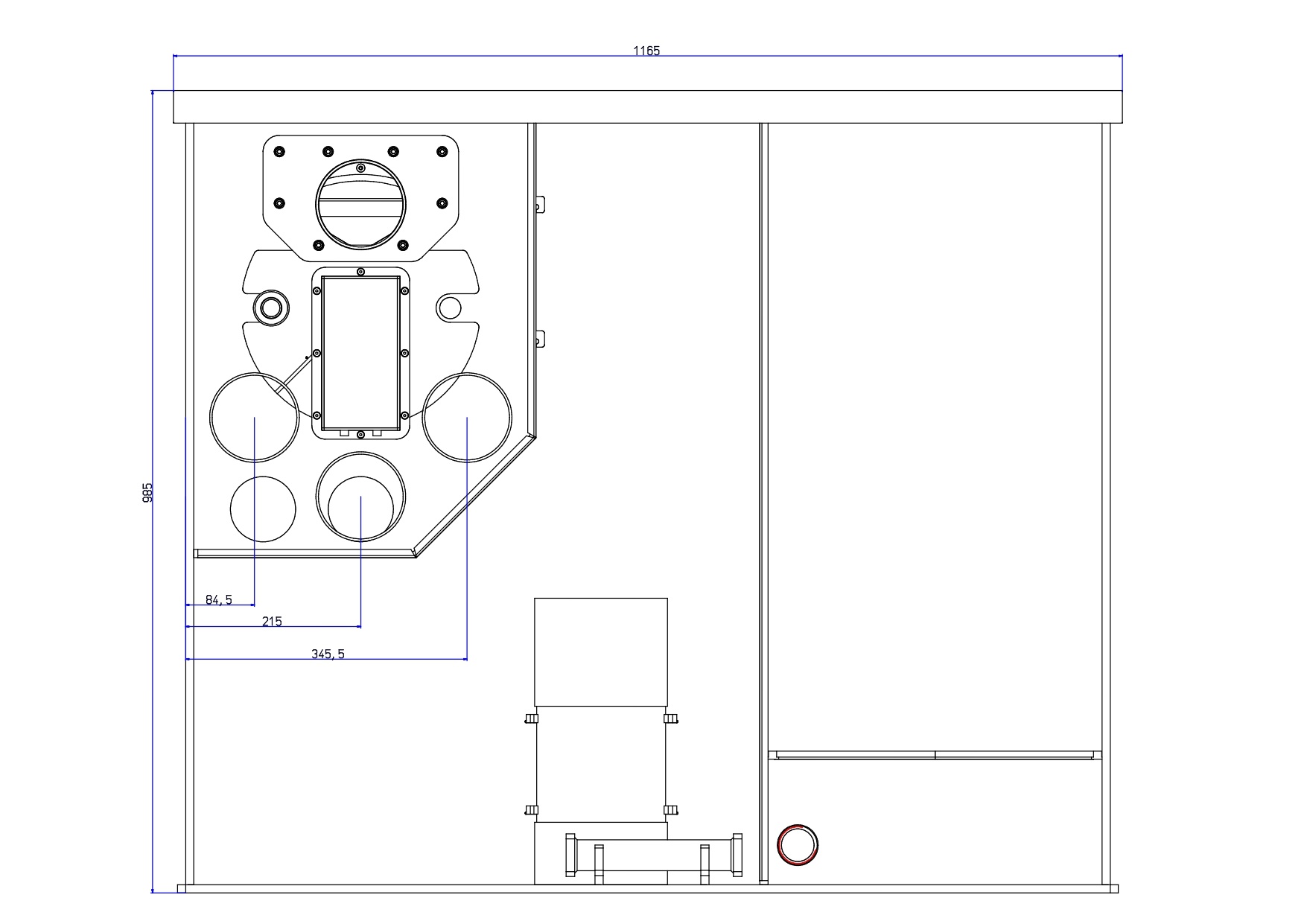 - Afmetingen L x B x H: 1165 x 805 x 985 mm (exclusief evt. doorvoeren)