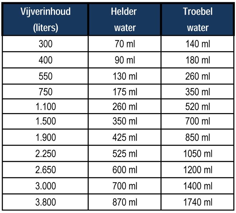 - Eenvoudig te verdelen door de pellets in het water te strooien of ze in een poreuze zak in het filter of skimmer te hangen