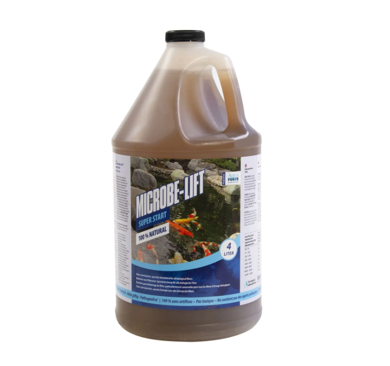 Om deze noodzakelijk processen plaats te kunnen laten vinden is het van essentieel belang dat alle benodigde bacteriën aanwezig zijn op uw filtermateriaal. Bij de op– of herstart van een vijverfilter zijn deze noodzakelijke bacteriën nog niet aanwezig waardoor schadelijke afvalstoffen niet kunnen worden omgezet naar minder schadelijke stoffen. Om dit proces te versnellen kunt u Microbe-Lift Super Start toevoegen. Deze speciale formule bevat alle bacteriën die nodig zijn om uw filter op te starten en de afbraak van organische en anorganische afvalstoffen uit uw vijver te versnellen.