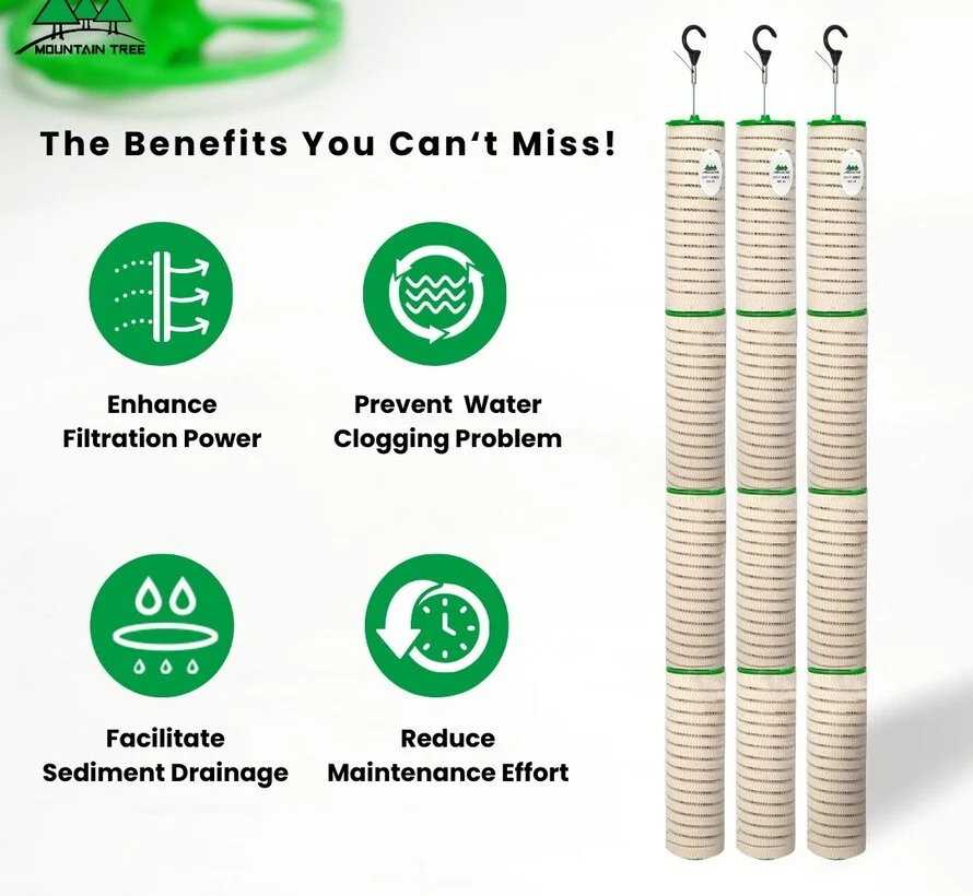 1 kit bevat 1 haak, 3 ringen en 1 onderplaat, dus 1 staaf van maximaal 3x25cm filtermateriaal.