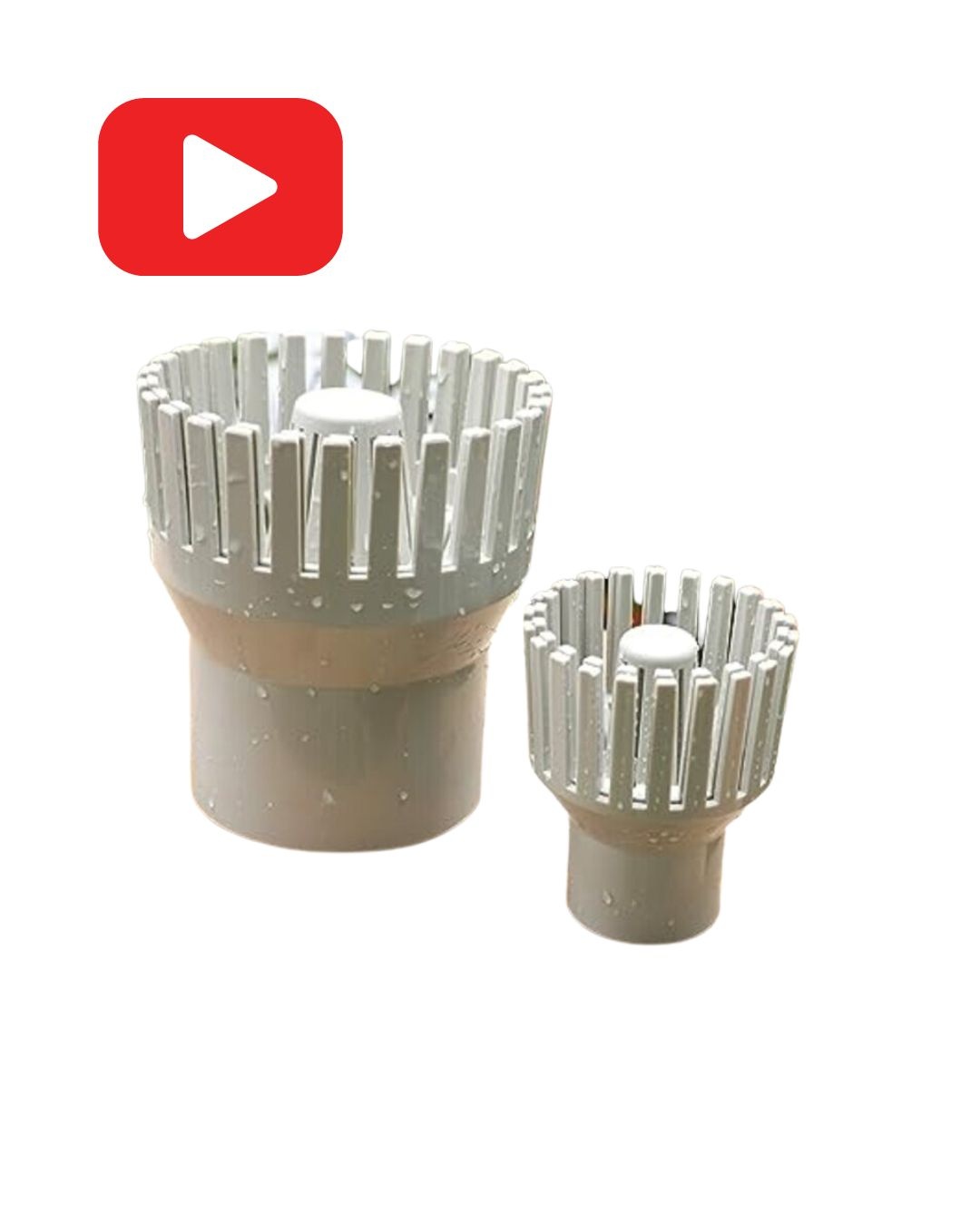 De Mountain Tree skimmer is verkrijgbaar in 3 maten: 50/75/110mm. De skimmer is eenvoudig zonder bewegende buizen te installeren en wordt op de afvoerbuis bevestigd. Dankzij de draaibare as van de skimmer is de vrije waterstroom regelbaar hierdoor is hij extra geschikt voor het opvangen van bladeren. Door het binnenste deel uit de skimmer te halen kan hij gemakkelijk worden schoongemaakt.