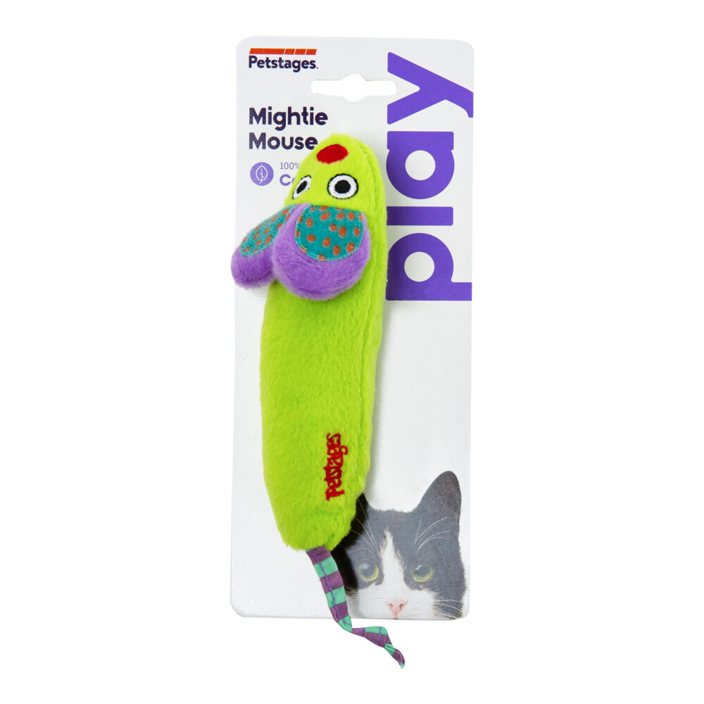 De Petstages Green Magic Mighty Mouse Groen is gevuld met een super kwaliteit Catnip met zeer sterke, lang houdende geur. Geen opvulmateriaal gebruikt.