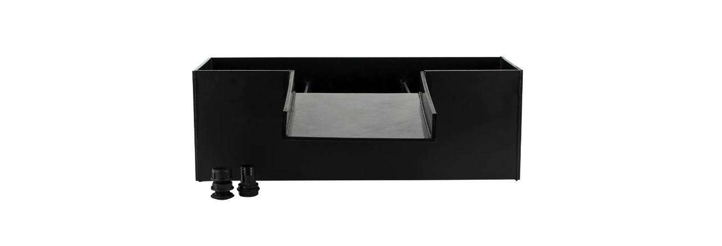 Wanneer het product geleverd wordt, zit er geen standaard aan -en afvoer gat in, omdat afhankelijk van je filteropstelling de benodigde aansluiting op een andere plaats kan zitten. Er wordt een aan -en afvoer aansluiting meegeleverd om zo zelf te bepalen wat het meest praktisch is voor jouw vijver. Let wel op dat je dus het gat zelf nog moet boren.