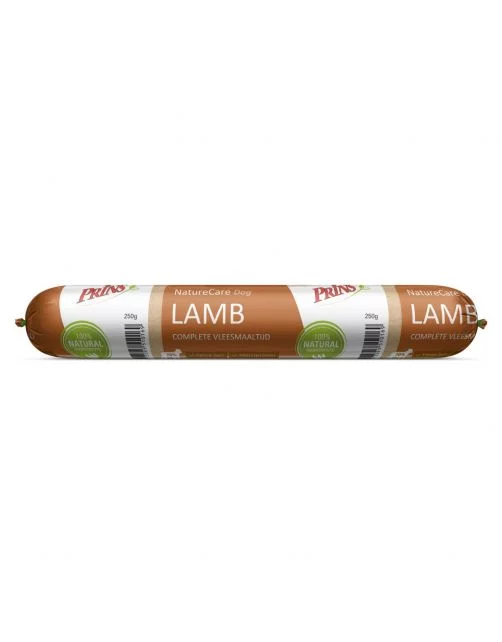 Ben je op zoek naar een 100% natuurlijke en volledige vleesmaaltijd voor de hond, die niet in de koeling hoeft? Dan is Prins NatureCare een goede keuze. Deze volledige vleesmaaltijd in worstvorm kan je eenvoudig meenemen en makkelijk in stukjes snijden. Ideaal als afwisseling op de dagelijkse voeding of als beloning tijdens het trainen. Prins NatureCare bestaat voor 70% uit vers vlees of gevogelte. Voor deze voeding is enkel de beste kwaliteit kip, kalkoen of lam gebruikt, aangevuld met ingrediënten zoals groenten, oliën, vitaminen en mineralen. Door de speciale bereidingswijze zijn de worsten ongeopend buiten de koeling houdbaar.