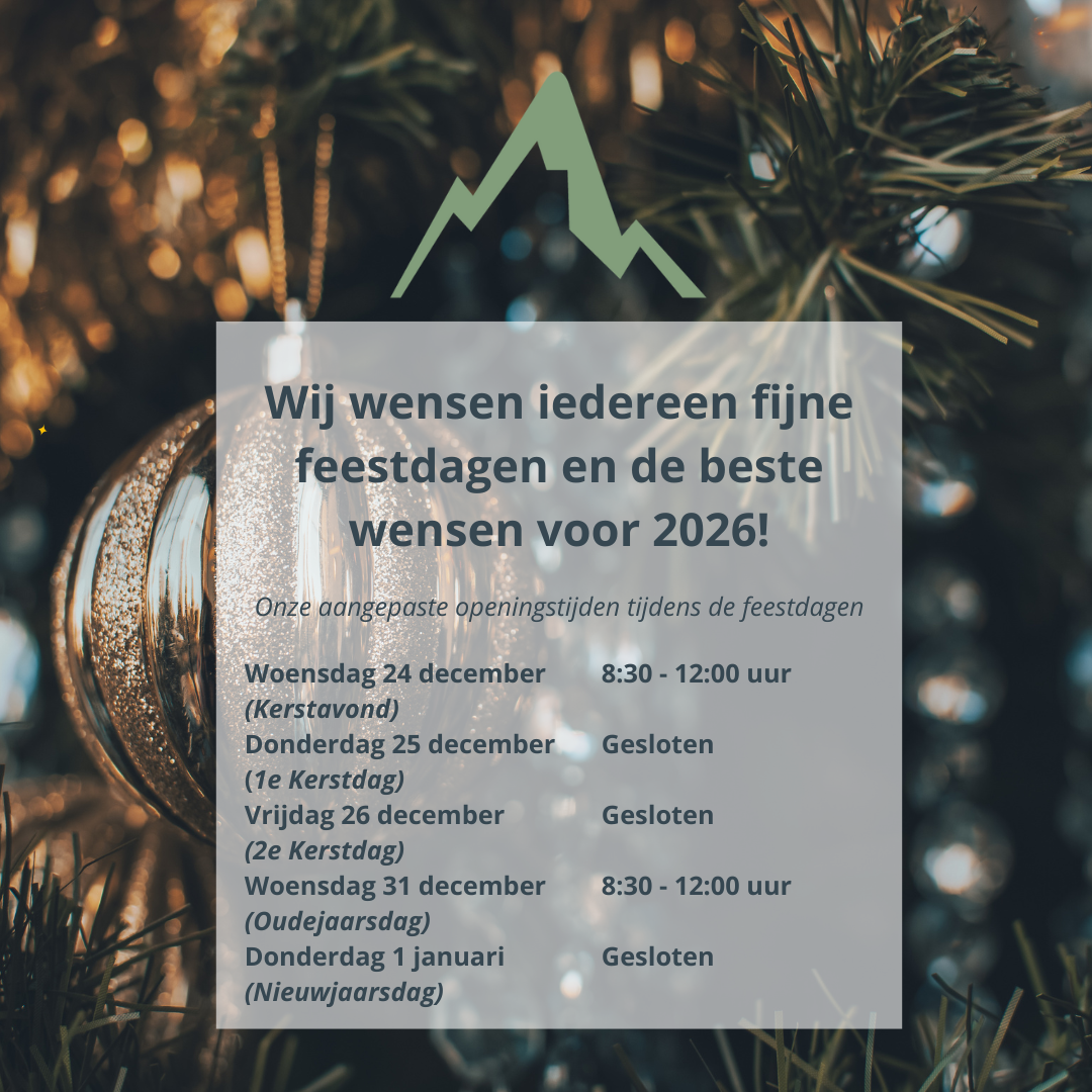 Wij wensen iedereen fijne feestdagen en de beste wensen voor 2026! Bekijk hieronder de aangepaste openingstijden van onze winkel tijdens de feestdagen.