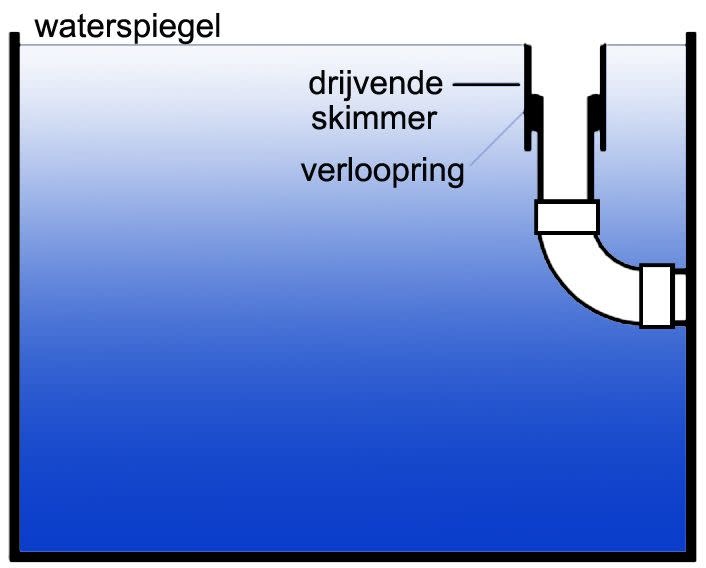 Deze drijvende skimmer kan rechtstreeks over een verloop naar 110 mm worden geschoven en zo via wanddoorvoer 110 mm worden aangesloten op een pomp of op een filter. De drijvende skimmer blijft drijven door de tempex ring.