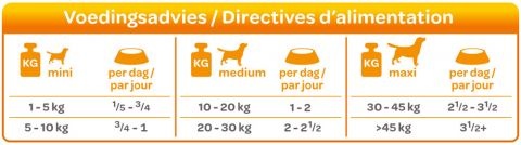 Samenstelling: Kip (80%), bruine rijst (5%), groenten (4%, 2% erwten en 2% worteltjes), zalmolie(0,3%), zeewier (0,06%), kruidenmix (0,04%, oregano, peterselie, tijm,marjolein). glucosamine (39mg/kg), chondroïtine (22 mg/kg), yucca extract(22mg/kg), cranberry extract (22mg/kg), gist extract (11mg/kg).