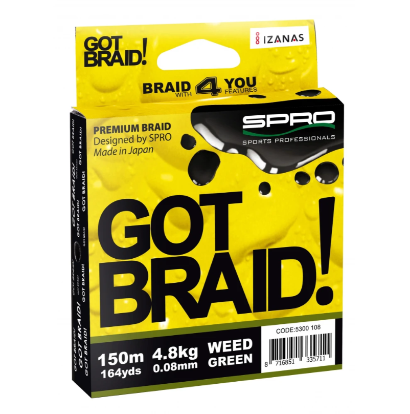 De nieuwe Got Braid! gevlochten lijn van SPRO is ontwikkeld met de nieuwste Japanse technologie. Hierdoor heeft SPRO het voor elkaar gekregen om een zeer soepele lijn te ontwikkelen. Door de souplesse van de lijn werp je verder en heeft de eindmontage (kunstaas of wat anders) een betere bewegingsvrijheid.