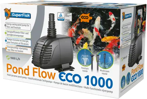 Met een SuperFish Pond Flow Eco 1000 heeft u een vijverpomp die multifunctioneel is. Deze vijverpomp kunt u gebruiken als fontein en als pomp voor de aansturing van uw vijver. Een Pond Flow eco 600 is een pomp die door het lage energieverbruik ideaal is in verschillende situaties en vijvers. Met twee jaar garantie en de mogelijkheid om de pomp in hoogte te verstellen heeft u met de aankoop van een pond flow eco een ideale fonteinpomp.