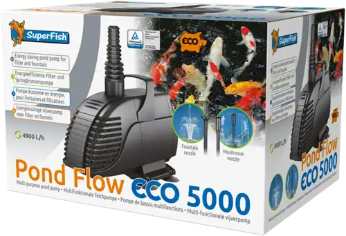 Met een SuperFish Pond Flow Eco 5000 heeft u een vijverpomp die multifunctioneel is. Deze vijverpomp kunt u gebruiken als fontein en als pomp voor de aansturing van uw vijver. Een Pond Flow eco 600 is een pomp die door het lage energieverbruik ideaal is in verschillende situaties en vijvers. Met twee jaar garantie en de mogelijkheid om de pomp in hoogte te verstellen heeft u met de aankoop van een pond flow eco een ideale fonteinpomp.