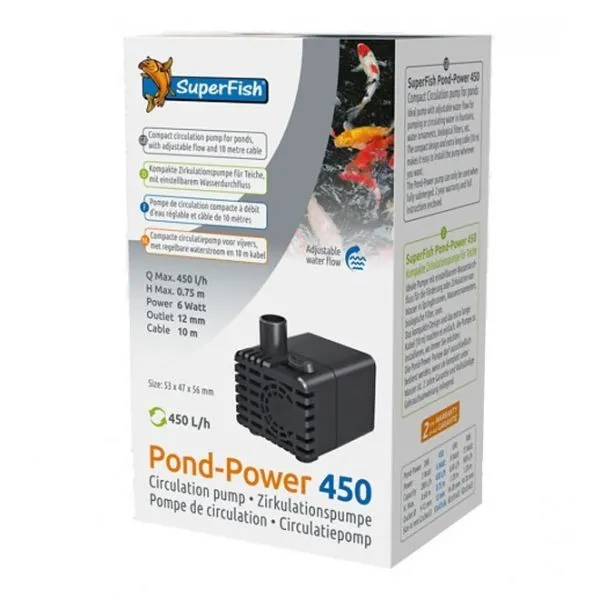 De Superfish Pond-Power is gemaakt om volledig ondergedompeld gebruikt te worden. Wanneer deze pomp droogloopt (zonder water), kan hij defect gaan. Deze vorm van oververhitting voor de pomp, is helaas uitgesloten van garantie.