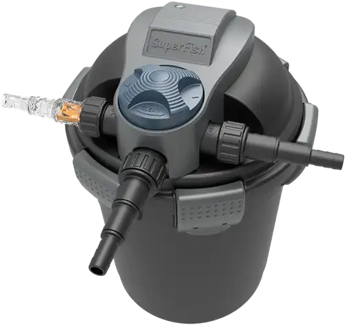 Een SuperFish topclear drukfilter is een vijverfilter die u kunt ingraven tot aan het deksel. Bij dit drukfilter zit een standaard UV lamp ingebouwd die ervoor zorgt dat uw vijver van groen water verlost is. De SuperFish filters staat bekend om de gebruiksvriendelijkheid wat betreft de filtering van het water, maar ook om het plaatsen van een nieuwe UV lamp. Bovendien is het reinigen van het filter gemakkelijk met het eenvoudige auto clean wash systeem.