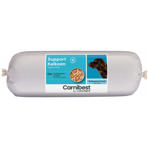 Deze voeding is zeer geschikt voor met name honden met suikerziekte, welke tevens allergisch of intolerant zijn voor de meest gebruikte vleessoorten. Het kan tevens als eliminatie-dieet gebruikt worden. U hoeft aan de Carnibest Support Kalkoen niets toe te voegen, het is net als alle andere verse maaltijden van Carnibest, compleet.