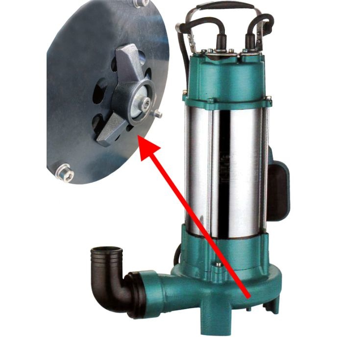 Zeer krachtige dompelpomp met snij-inrichting om vaste delen te versnijden zoals bladeren, draadalgen, papier, stro, etc). Gietijzeren pomphuis, RVS 304 as. Ideaal als vuilwaterpomp te gebruiken voor het afvalwater van filterinstallaties zoals zeefbochten en trommelfilters. Voorzien van slangtule 50mm en nylon trekkoord. Max. 5 meter onder water te plaatsen. Aansluiting: 2” bi.dr.