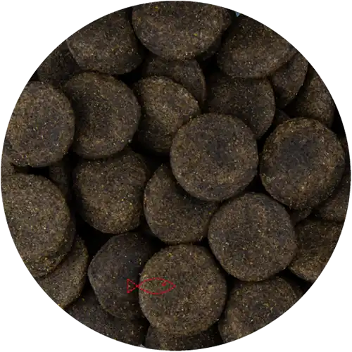 Analyse: Eiwitten 30%, Vet 12%, as 5%, Vezels 3%, Fosfor 1%, Calcium 1%, Natrium 0,1%