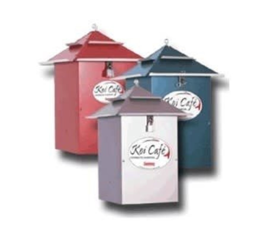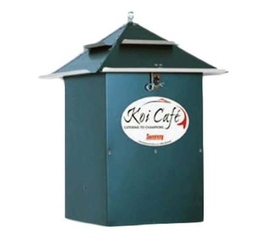 De Koi Café voerautomaat voor siervissen biedt het gemak van regelmatig voeren tot 24 keer per dag. Het innovatieve ontwerp voorkomt dat er vocht bij het voer kan komen. Voorzien van zichtglas om de hoeveelheid voer (max. 2 kg.) te kunnen zien. Wordt inclusief digitale timer en oplaadbare batterij geleverd (zonnepaneel als extra optie verkrijgbaar). Timer kan ingesteld worden van 2 tot 60 seconden. Leverbaar in 3 kleuren. Fabrikant Sweeney Enterprises produceert al 30 jaar voeder automaten van de hoogste kwaliteit en geeft dan ook 3 jaar garantie op hun producten! Het huis is gegalvaniseerd.