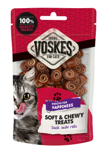 Laat uw kat kennismaken met de overheerlijke Voskes Soft & Chewy Sushi rolls eend kattensnack. Deze kattensnacks, op basis van heerlijke eend en aangevuld met kabeljauw, zijn zachte snoepjes die de smaakpapillen van uw kat zullen verrassen. De sushivorm voegt een speelse touch toe aan elke hap.