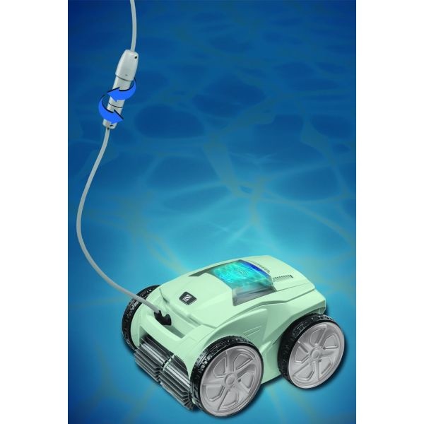 De Zodiac Alpha 63 iQ Bio zwemvijver robot is de beste Zodiac robot voor uw zwemvijver of bio zwembad. Hierbij kan de robot gebruikt worden bij alle soorten ondergrond en alle vormen, zolang de wanden hard zijn en voldoende steun bieden. Voorzien van een swivel om te voorkomen dat de kabel in de knoop raakt, zodat de robot ongestoord zijn werk kan doen en u hier niet naar om hoeft te kijken. Dankzij de vierwielaandrijving kan de robot gemakkelijk door uw zwemvijver of bio pool manoeuvreren, zodat de bodem, wanden en de waterlijn worden gereinigd. Het filter heeft een dichtheid van 400 micron en een capaciteit van wel 5 liter, wat het perfect maakt voor zwemvijvers en bio pools tot een lengte van 15 meter. Dit is mogelijk door de standaard meegeleverde stroomkabel van 18 meter.